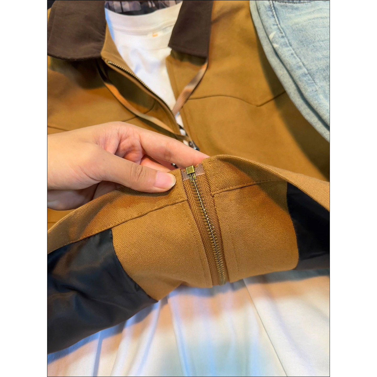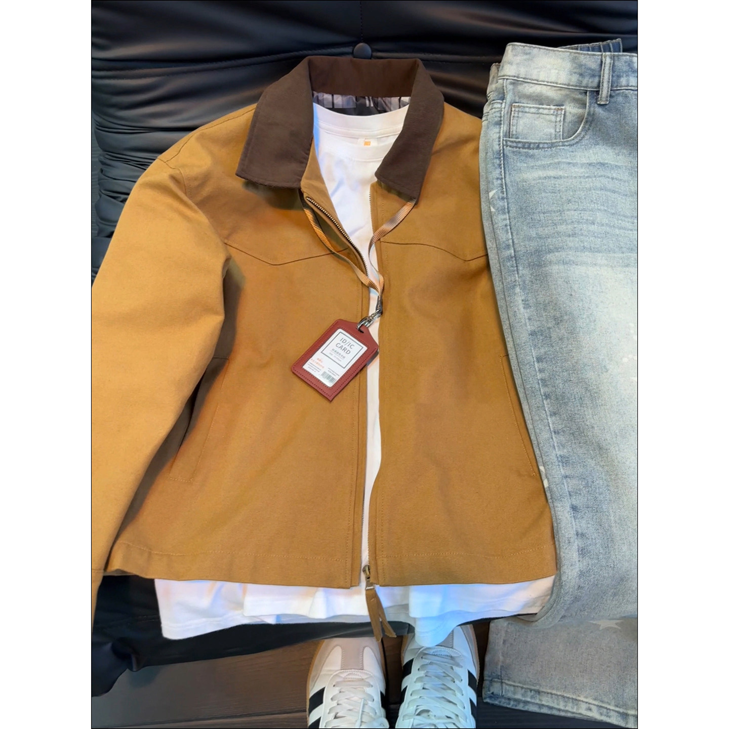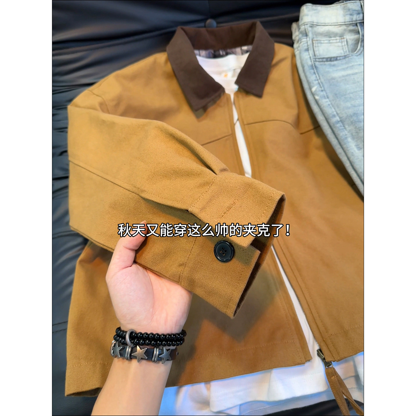 卡其色巴恩风工装外套男款秋冬翻领底特律夹克水洗帆布情侣棒球服