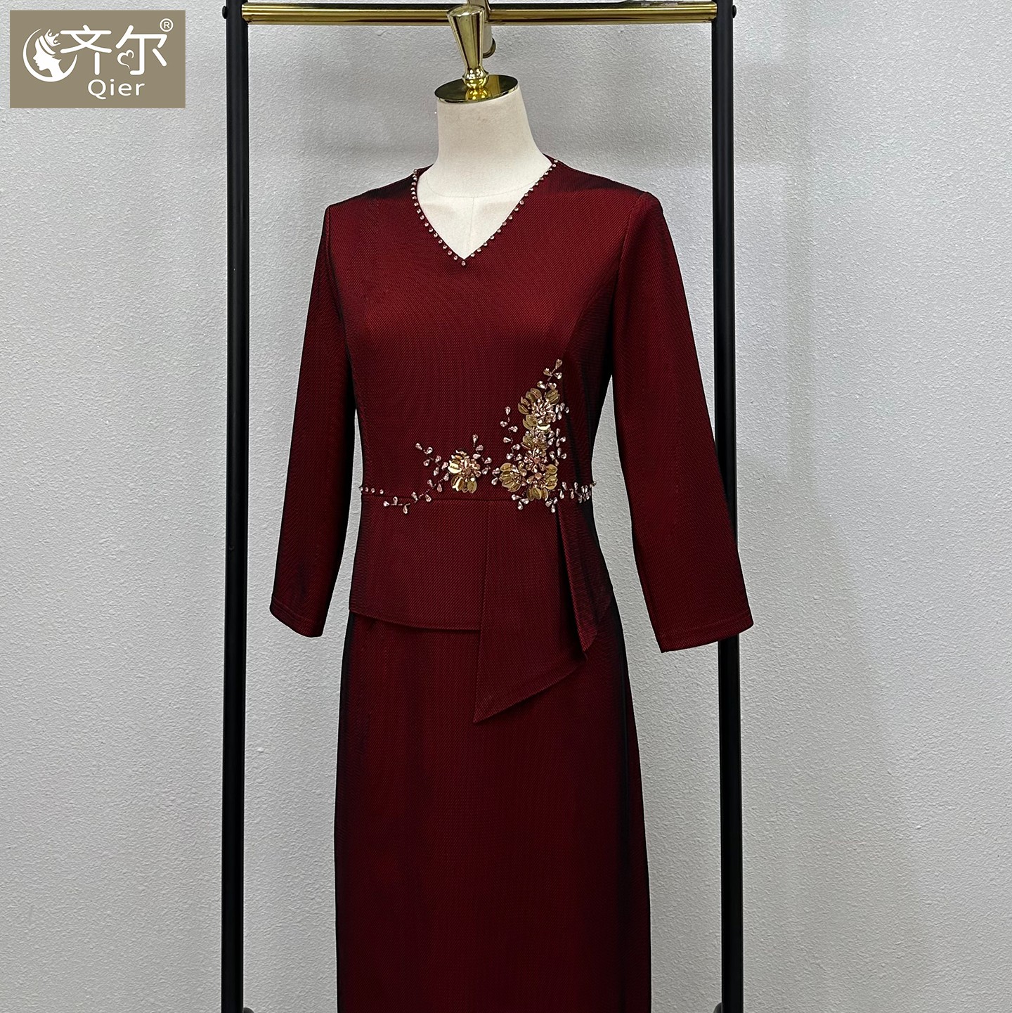 喜婆婆婚宴装2025新款十月结婚妈妈婚礼服高贵大码连衣裙假两件