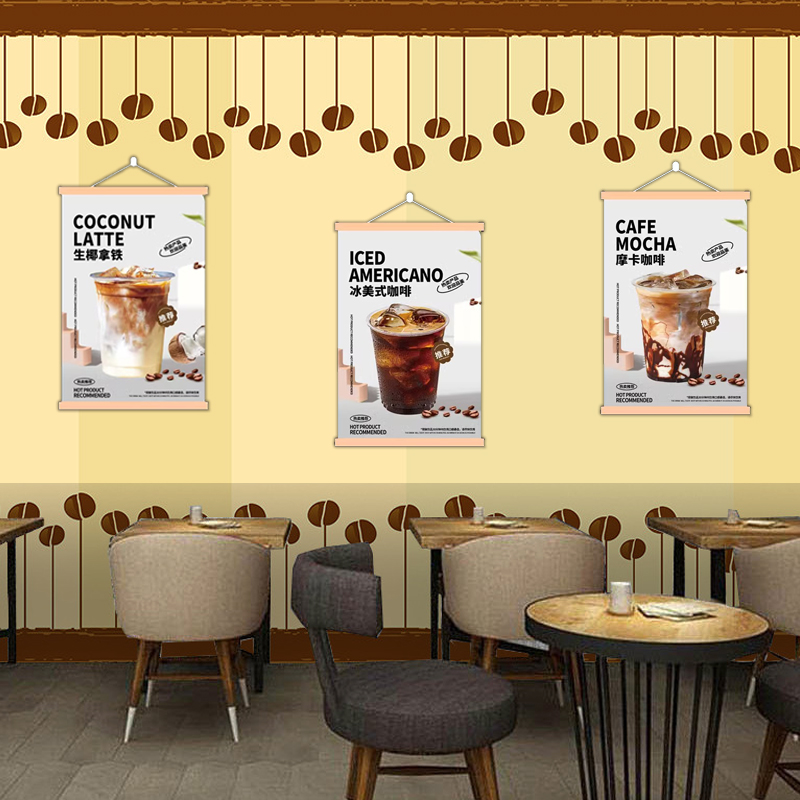咖啡厅墙面挂画油画布装饰画生椰拿铁冰美式奶茶饮品广告背胶海报