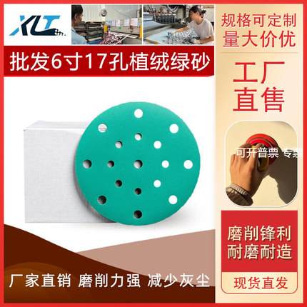 XLT绿砂6寸17孔背绒砂纸锆刚玉磨料 费斯托干湿两用汽车打磨抛光