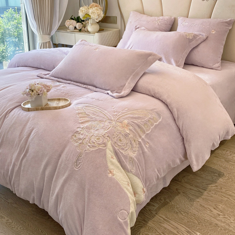 婴儿牛奶绒四件套冬加厚保暖珊瑚绒床单被套床笠新款轻奢床上用品