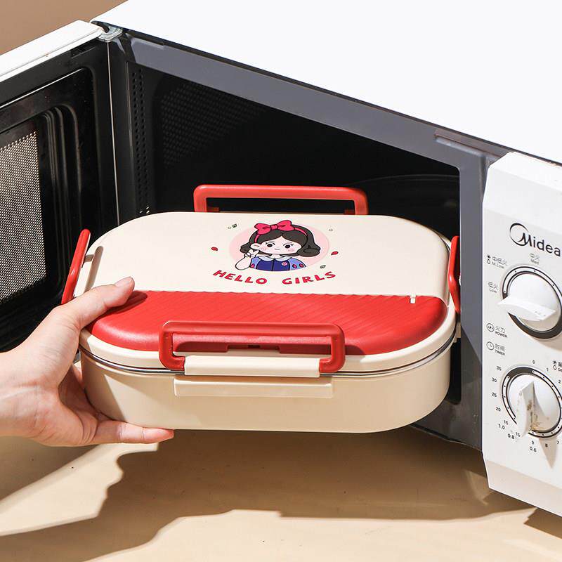 304不锈钢饭盒保温一年级女孩小学生专用分格便当餐盒微波加热凤
