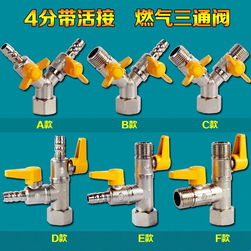 活动螺帽带活接头全铜燃气阀门三通4分煤气阀天然气开关球阀分路