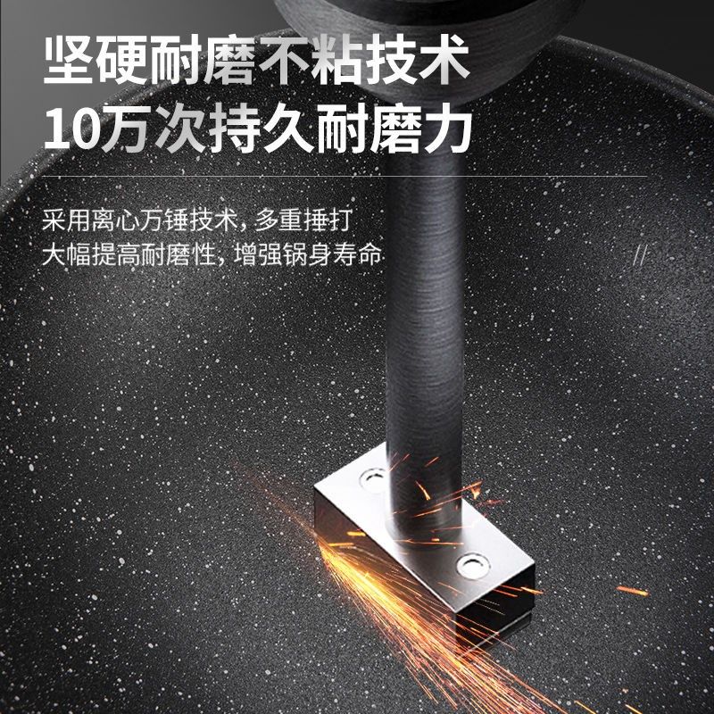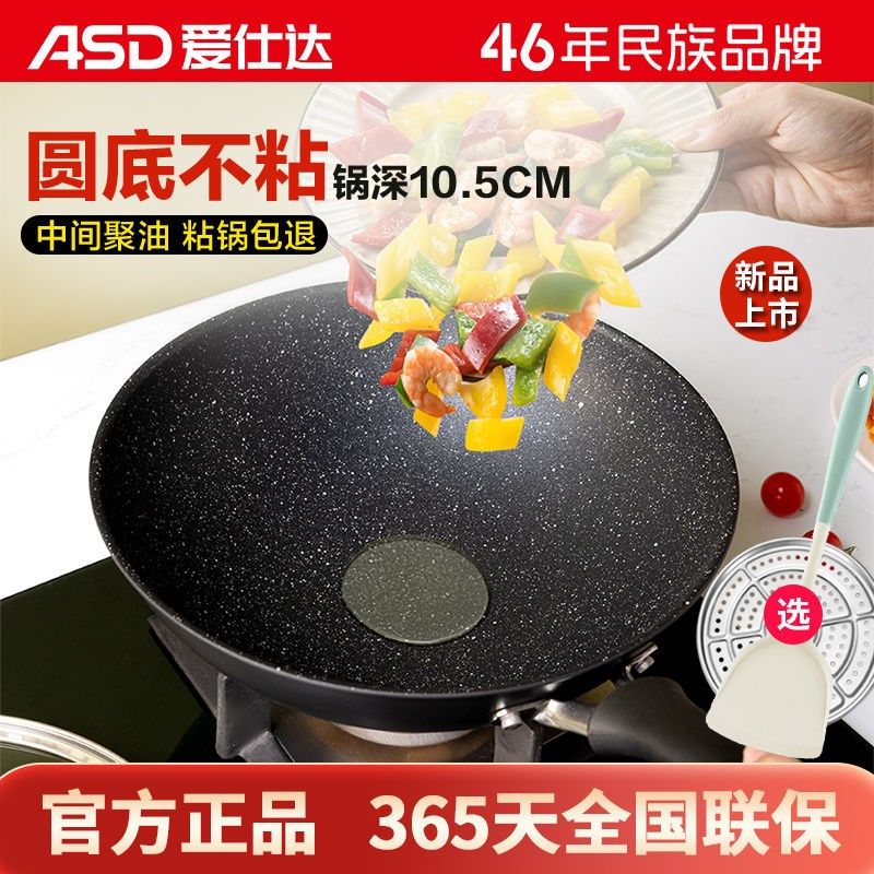 爱仕达圆底不粘锅麦饭石色炒锅尖家用炒菜锅加深不沾锅燃气灶适用