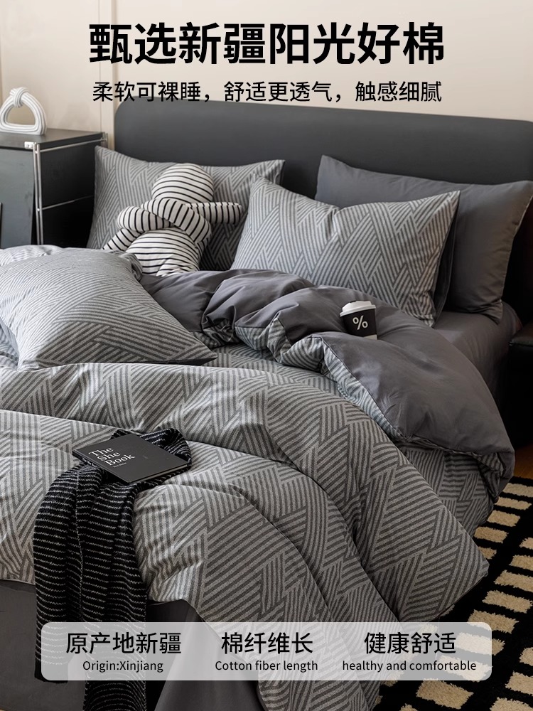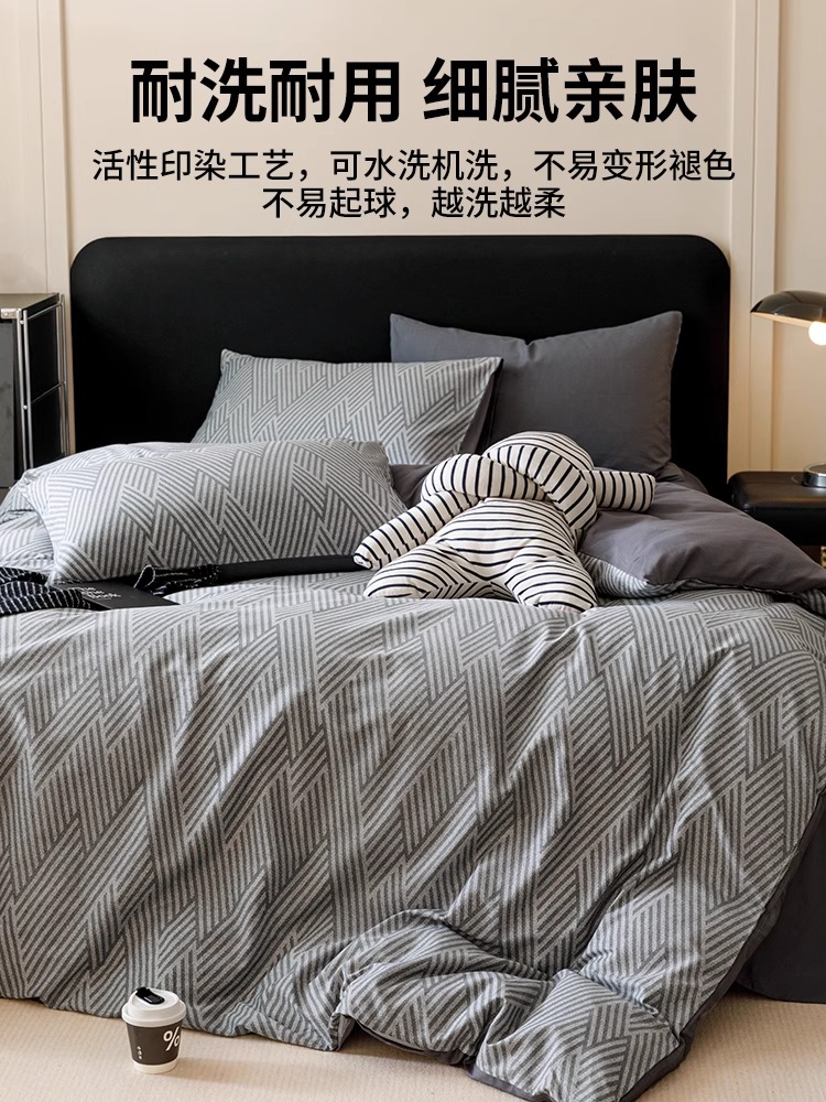 南极人简约北欧风全棉床上四件套100纯棉宿舍被套床单人套件床品