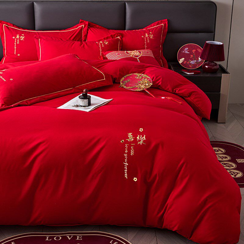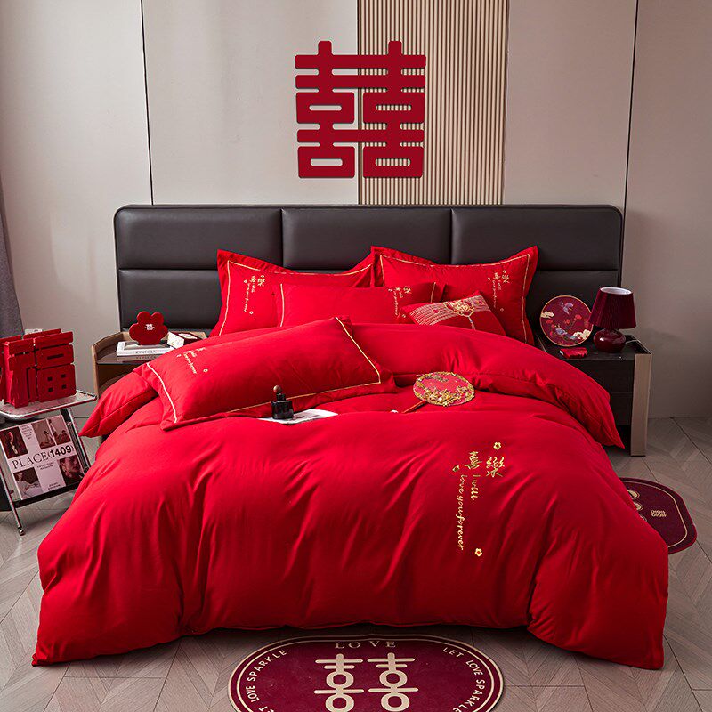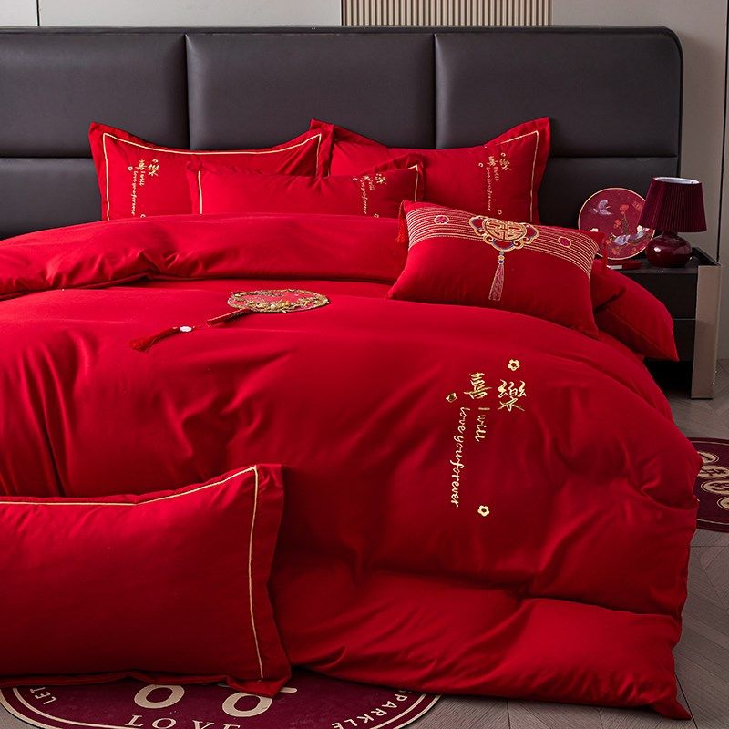 结婚床上用品四件套大红色婚房喜庆床单被套被单婚礼新婚礼物中式