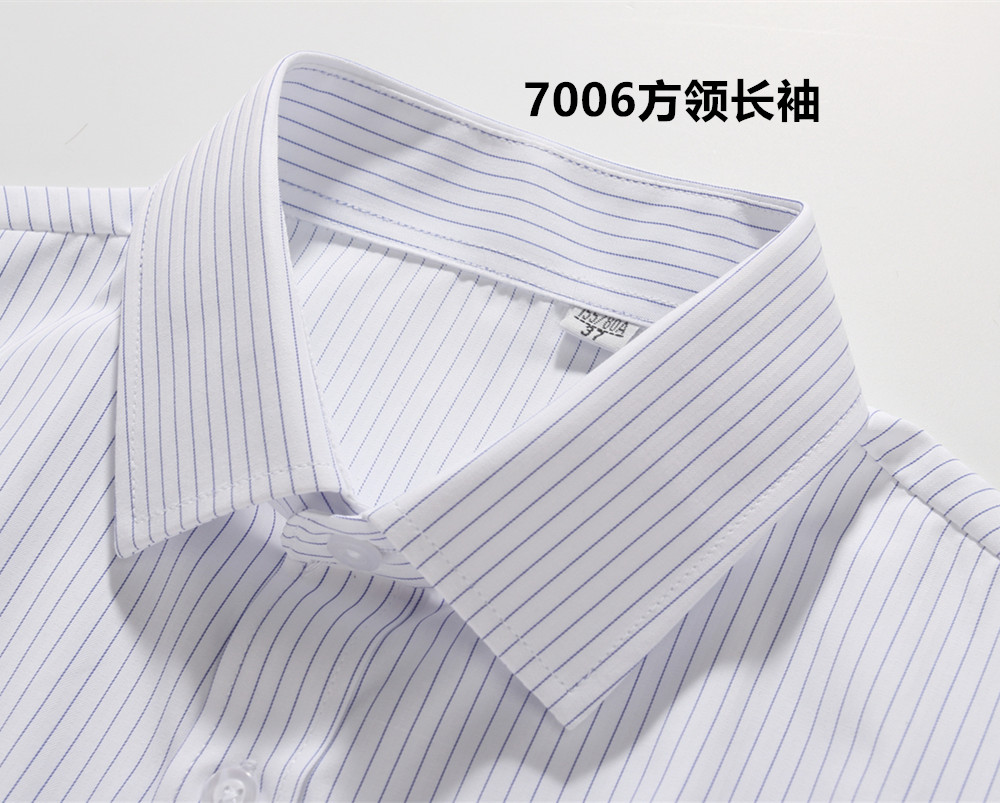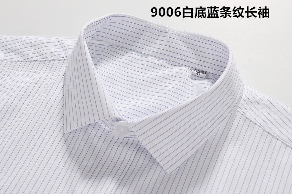 华夏专用女士短袖方领白底蓝色条纹工装衬衫女蓝条纹职业衬衫条纹