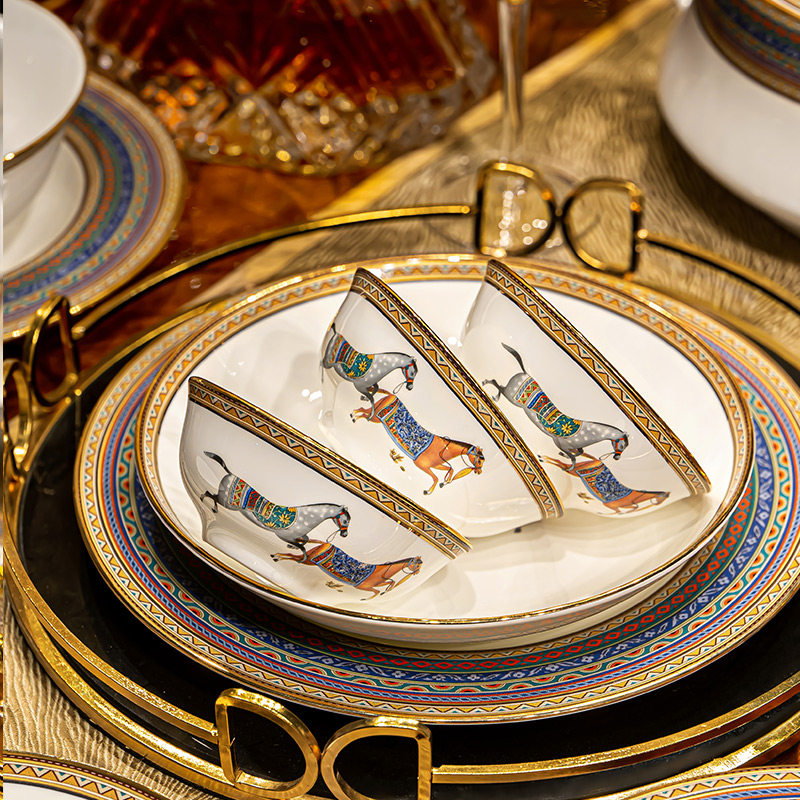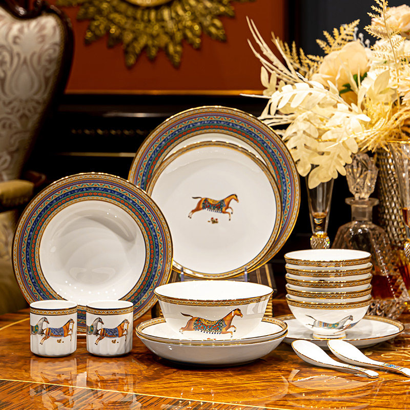 青颜双福马餐具碗盘欧式