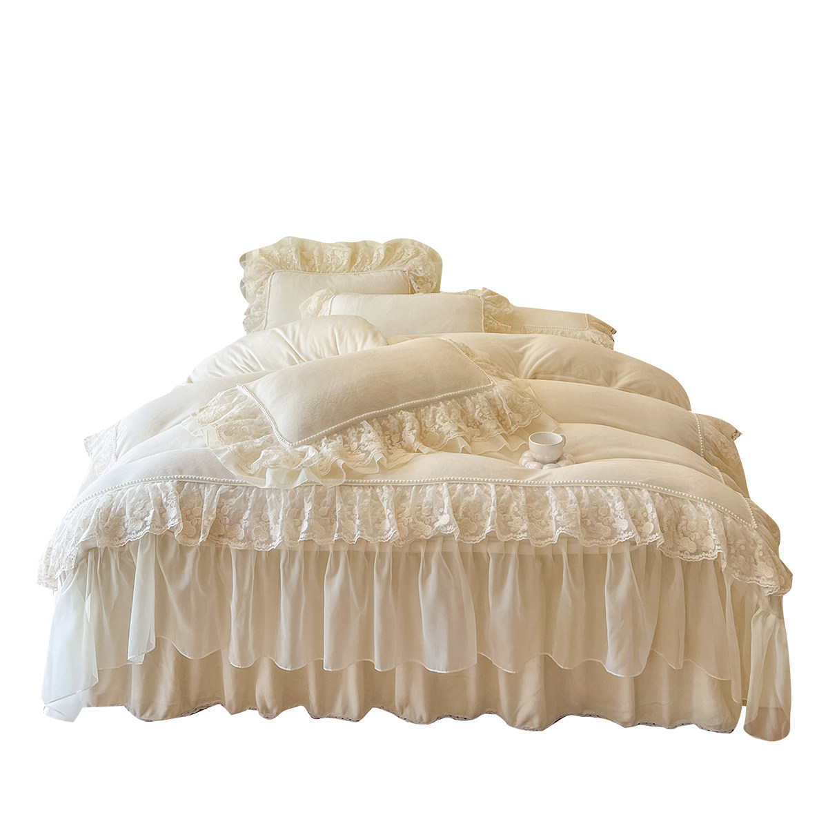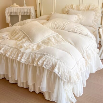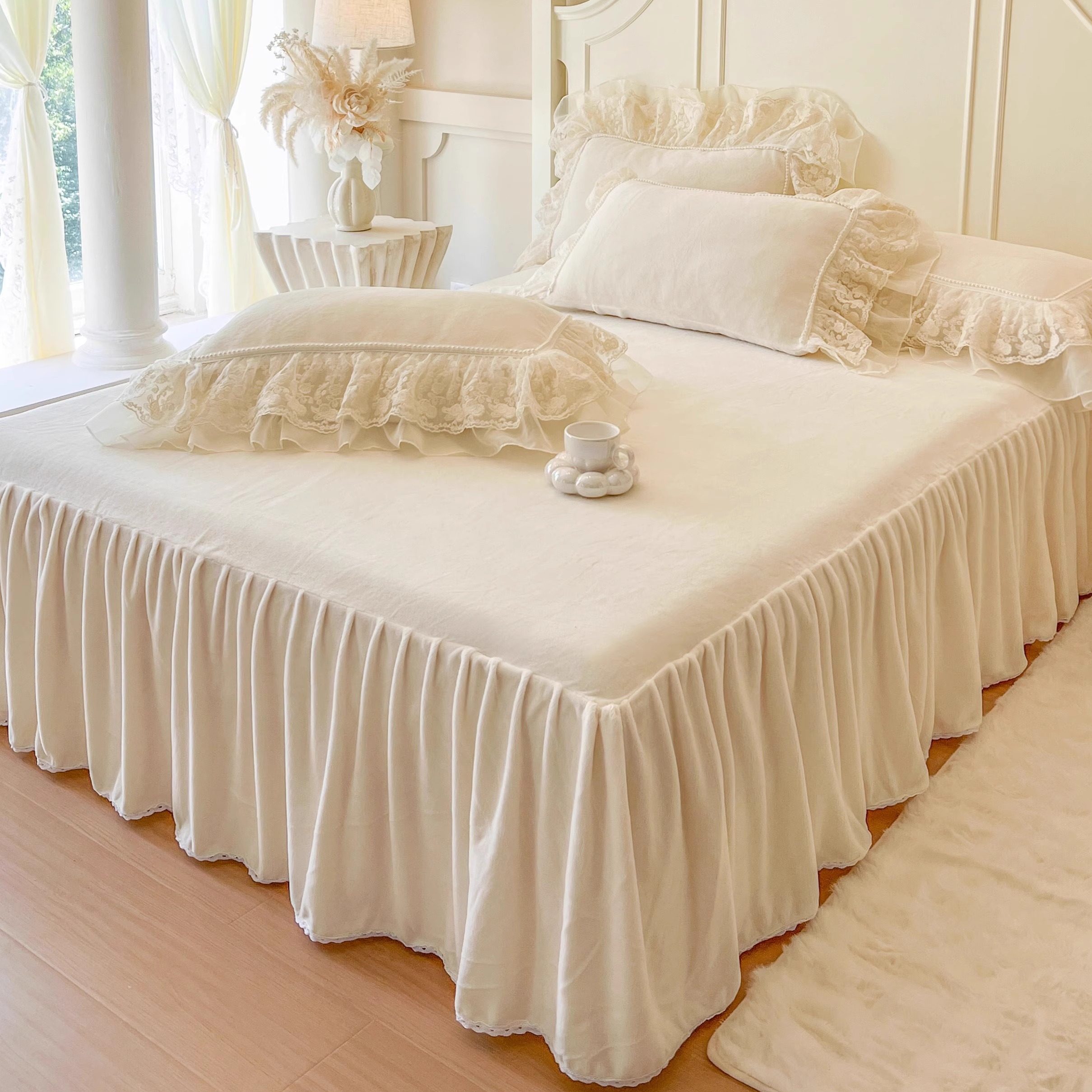 法式加厚牛奶绒床上四件套床裙款