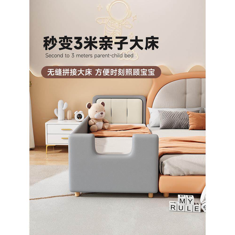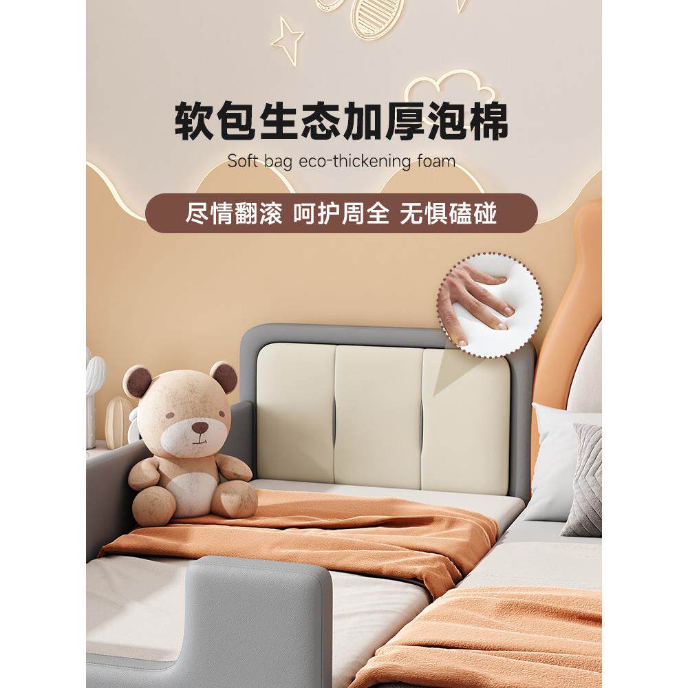 婴儿床儿童床拼接床加宽侧床小床婴儿皮革软袋大床可调高度定制