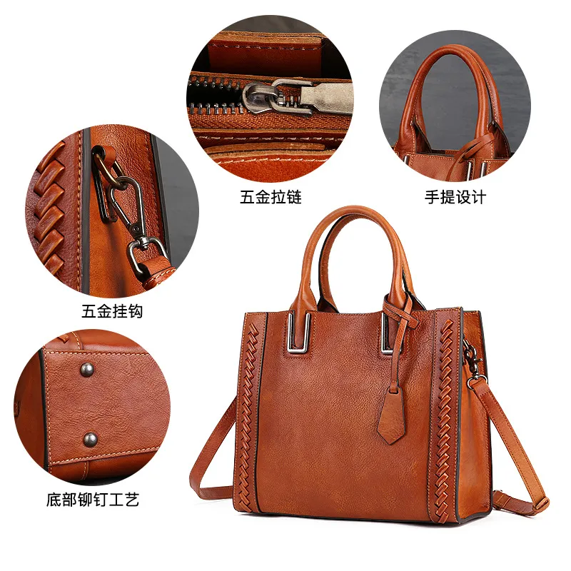 外贸真皮女包手提包夏季复古小众女士斜挎大容量软皮托特包文艺风