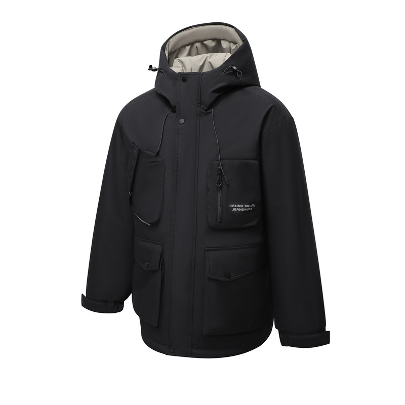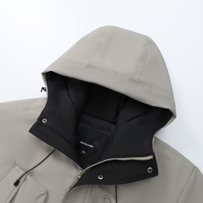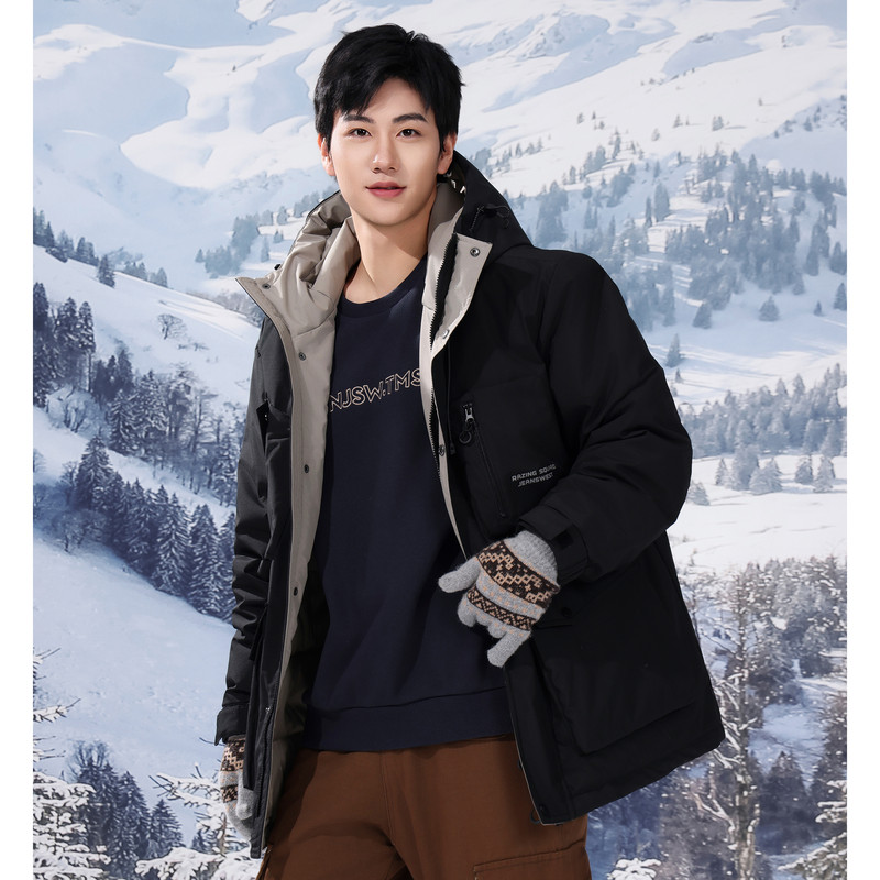 JW真维斯男装冬季羽绒服 潮流男士连帽羽绒中长款外套男款衣服