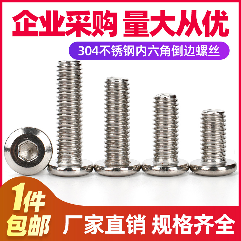 304不锈钢平头倒边内六角螺丝家具螺栓圆头斜边螺钉M3M4M5M6M8M10