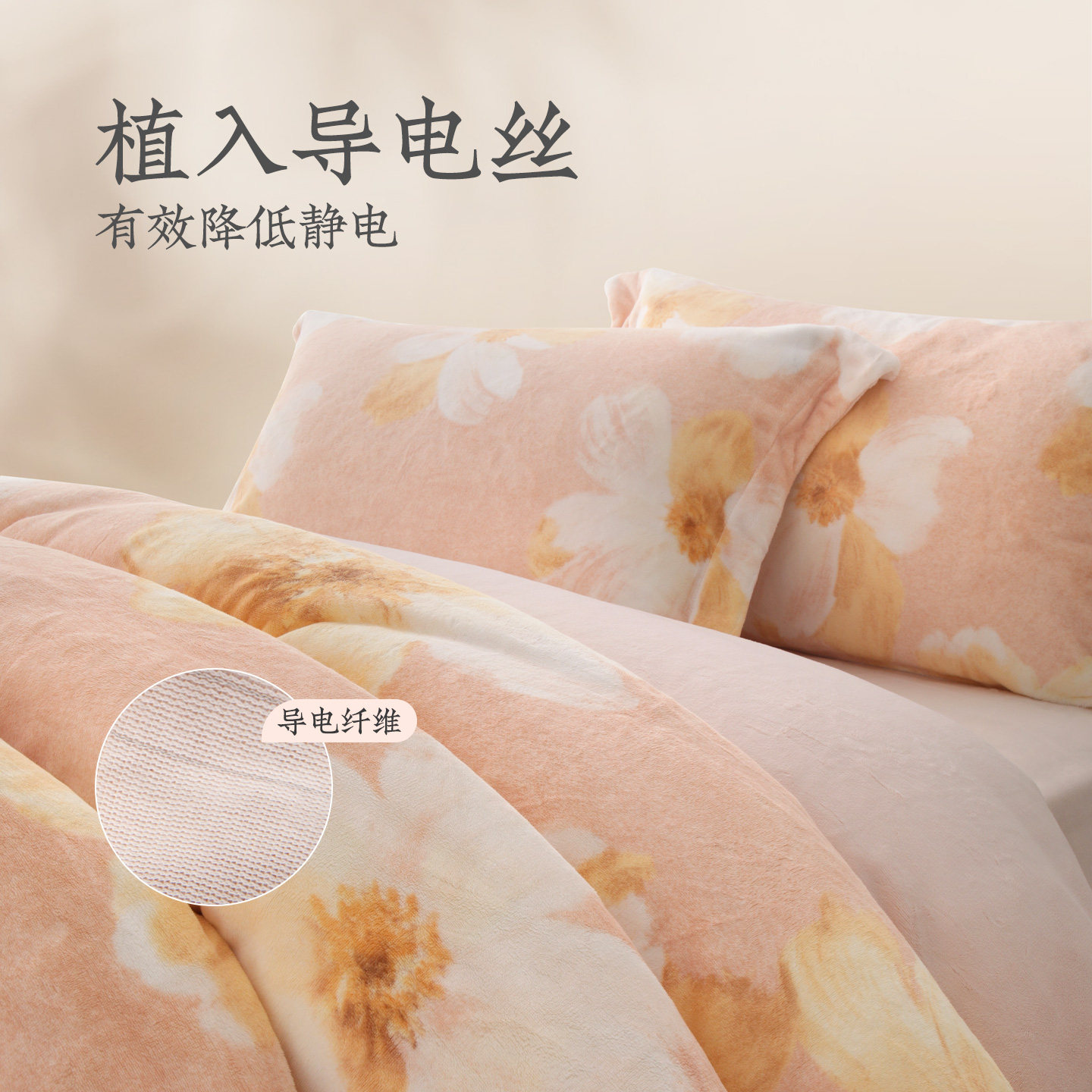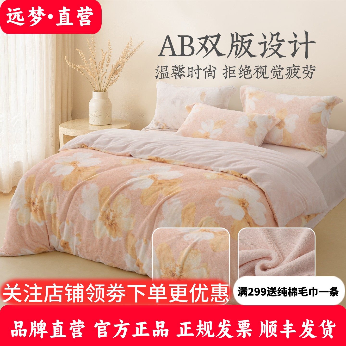 远梦艾能绒床单四件套加厚保暖被套床单秋冬季床上用品抗菌双面绒