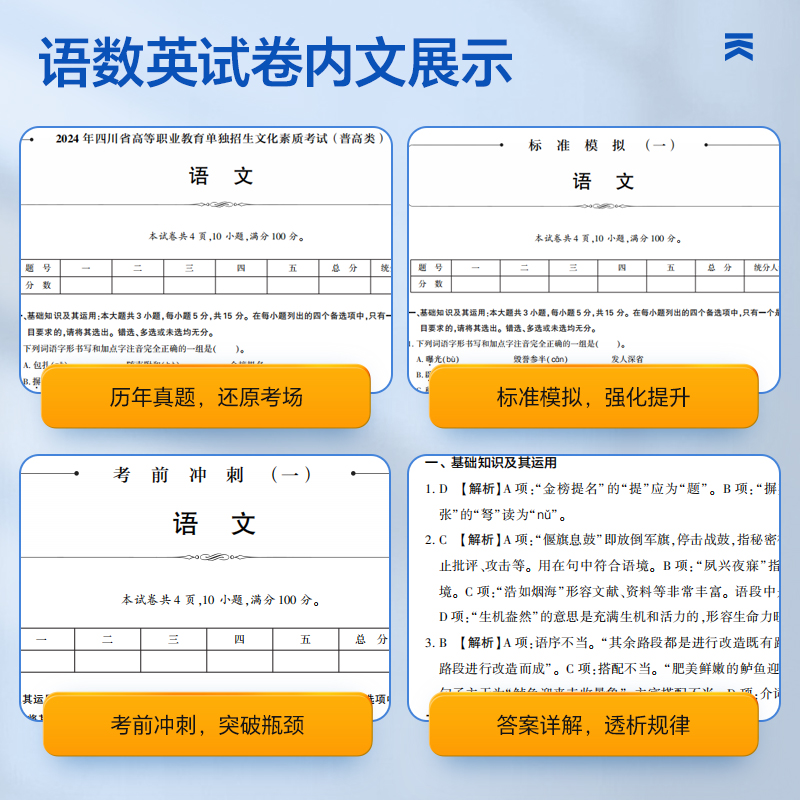 备考2026年四川省高职单招考试普高类中职类单独招生复习教材全真模拟测试卷历年真题复习资料语文数学英语信息技术通用技术资料书