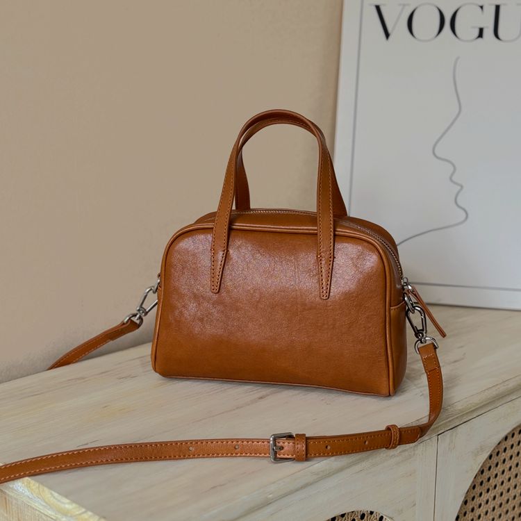 云水集2024新款头层植鞣牛皮手提包小众高级感真皮女包单肩斜挎包