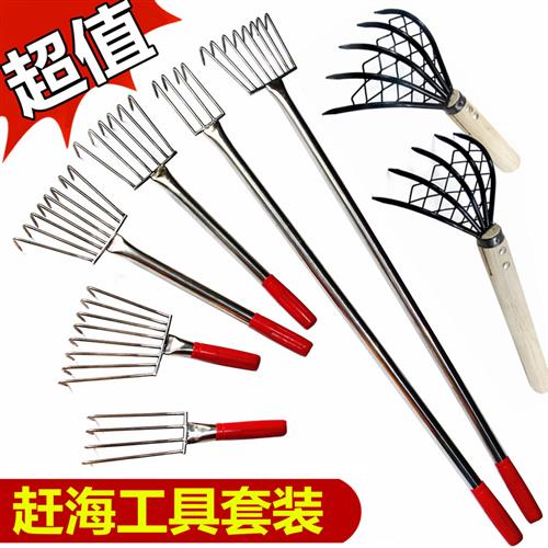 多功能不锈钢蛤蜊耙子挖花蛤海蛎子蛏子水草海边赶海工具套装神器