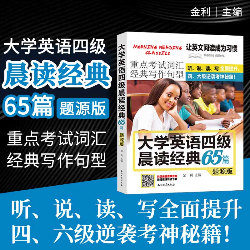 大学英语四级晨读经典65篇 题源版 送音频自学入门重点考试词汇经典写作句型英语晨读美文书听说读写全面提升四六级逆袭考神秘籍