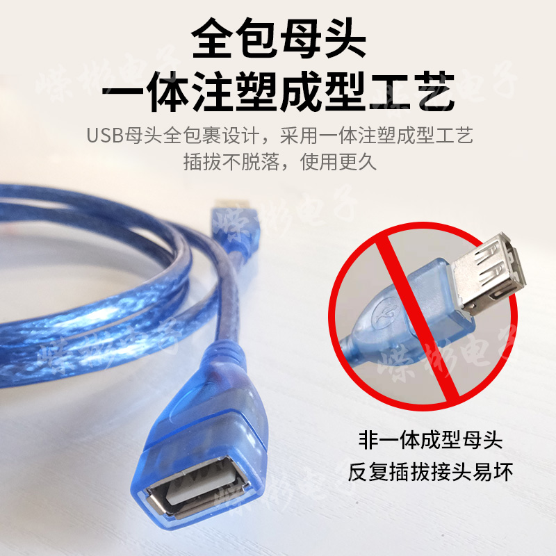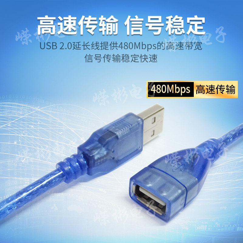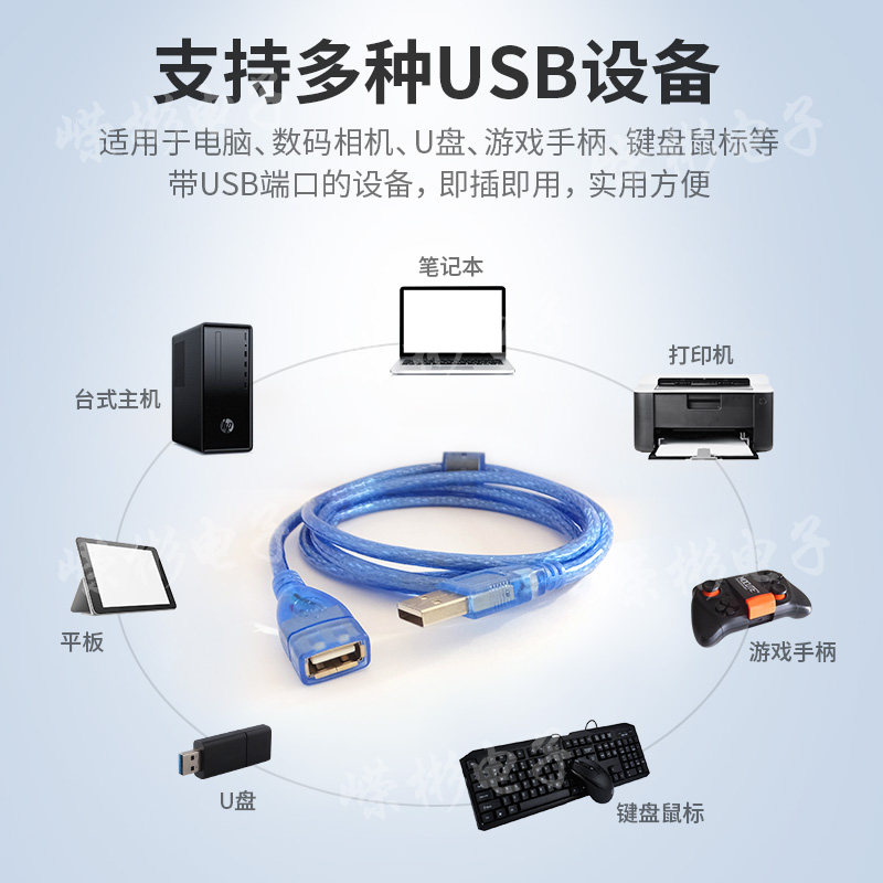 USB延长线 2.0数据线U盘鼠标加长线带屏蔽磁环1米LED公对母打印机