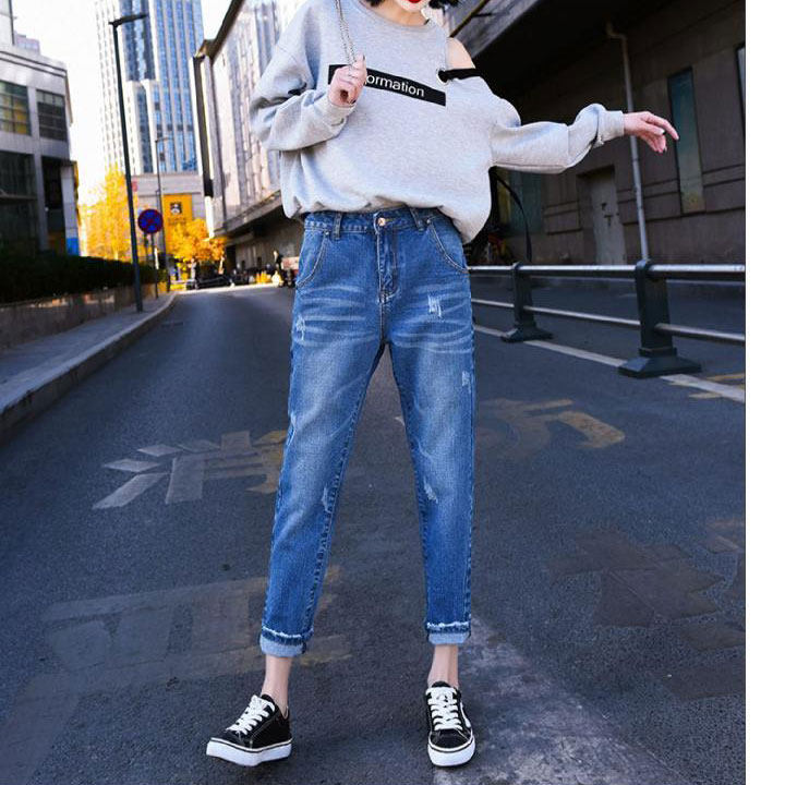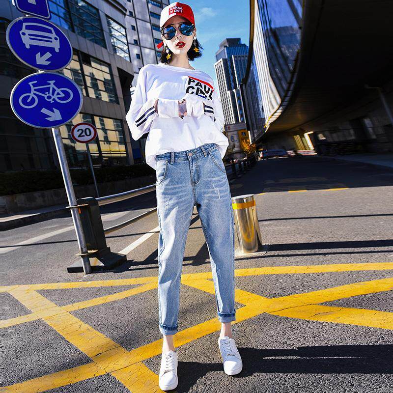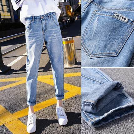 牛仔裤女直筒九分2025新款浅色宽松哈伦裤高腰显瘦萝卜老爹裤子潮