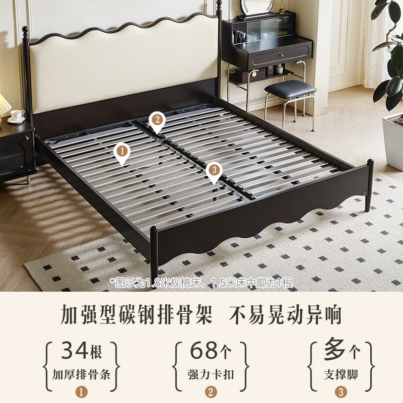 全友家居法式复古风双人床主卧室实木脚大床2025年新款单人涟漪床