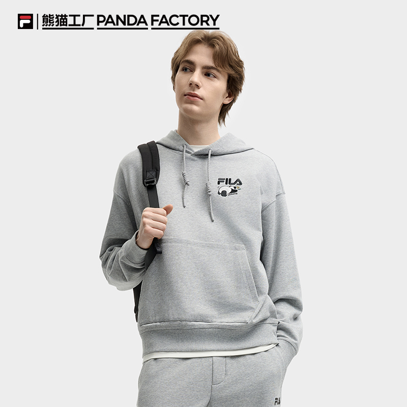 FILA斐乐熊猫工厂男女同款卫衣2025秋新品宽松情侣连帽运动上衣