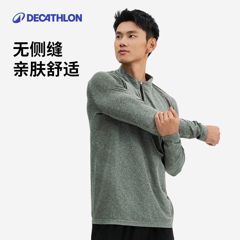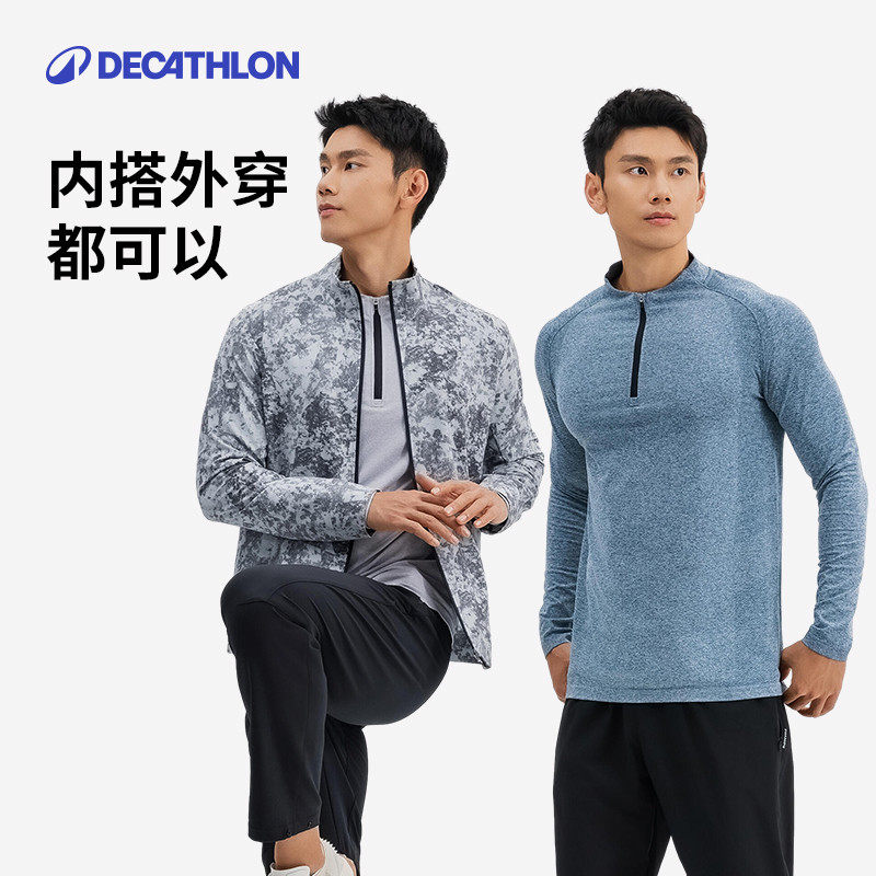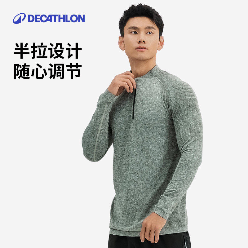 迪卡侬卫衣男秋季新款健身跑步运动长袖半拉链速干长袖上衣SAX3