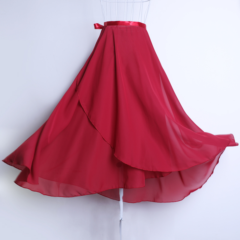舞蹈服舞蹈裙女成人系带雪纺长裙一片式半身裙排舞大裙摆纱裙黑色
