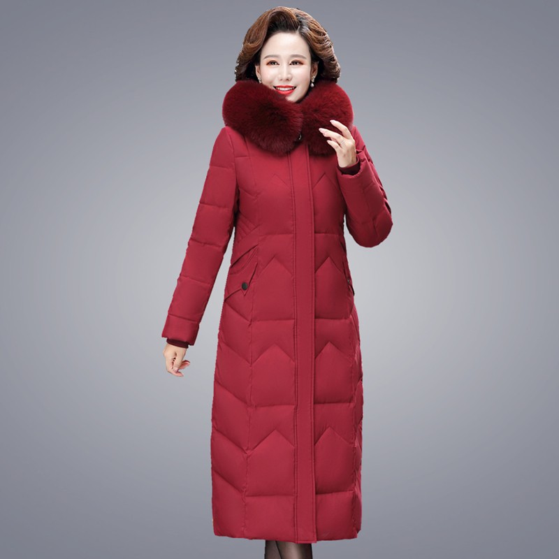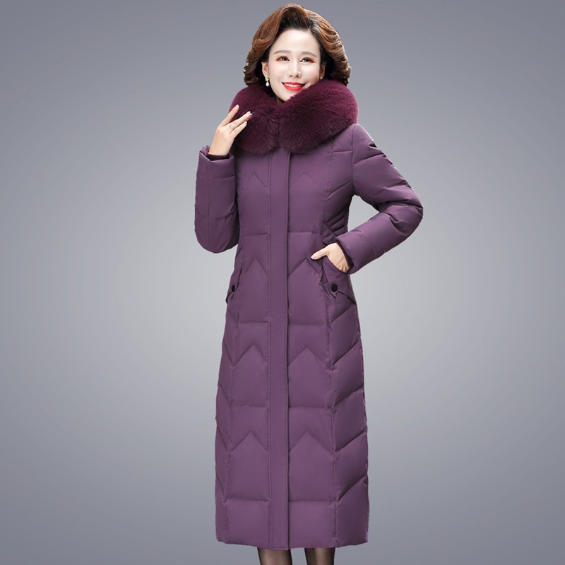中老年棉衣女长款加厚2021新款妈妈冬装羽绒棉服过膝修身棉袄外套