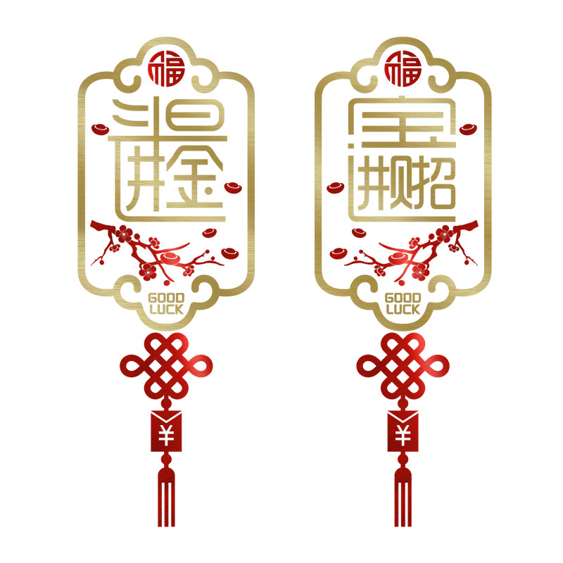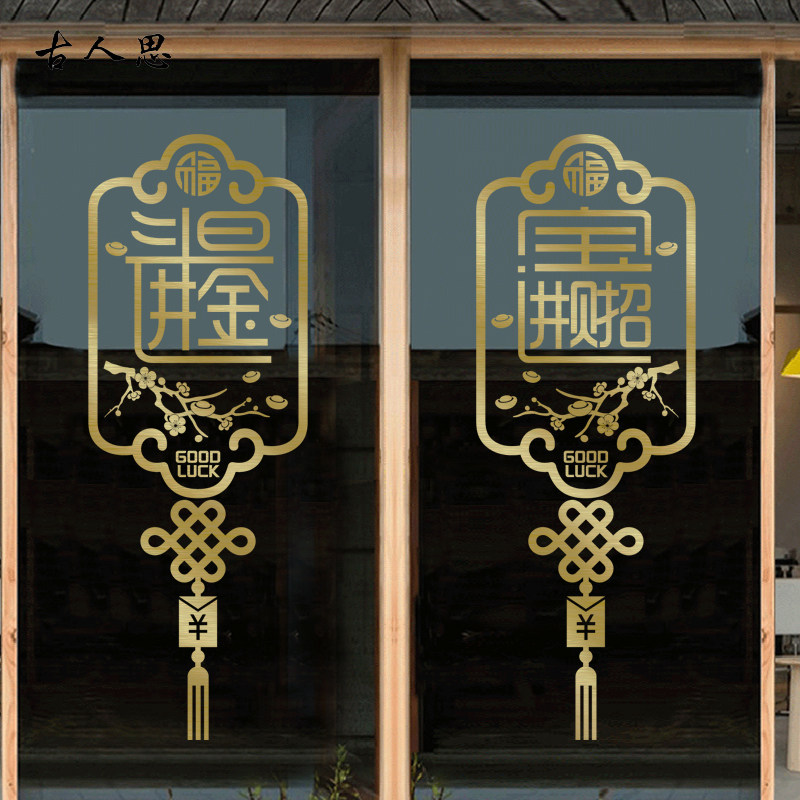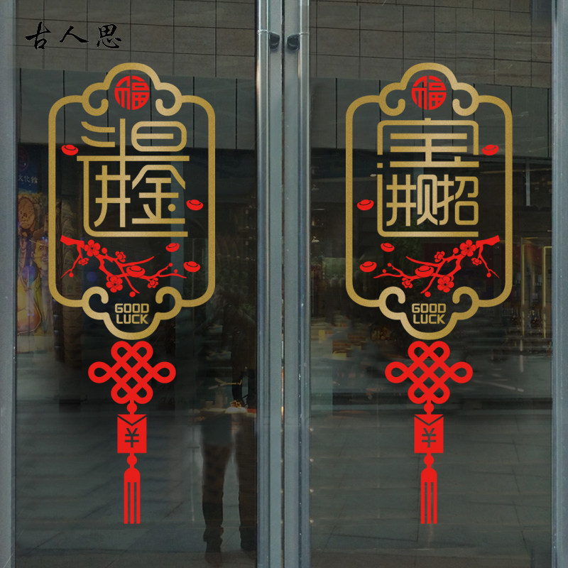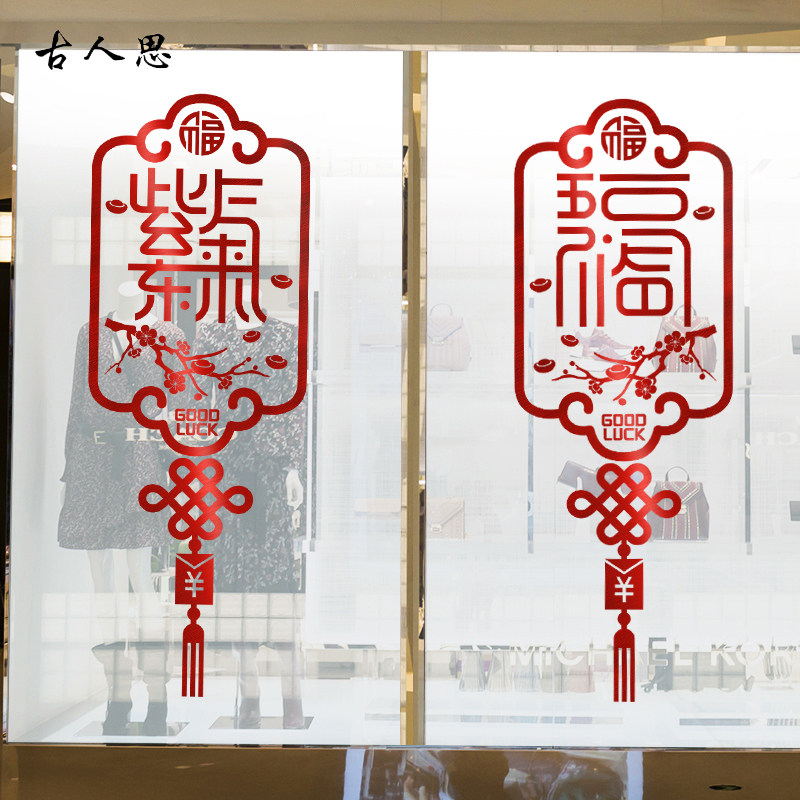 新年中国结贴纸招财进宝春节店铺装饰商场橱窗花玻璃玻璃门贴纸