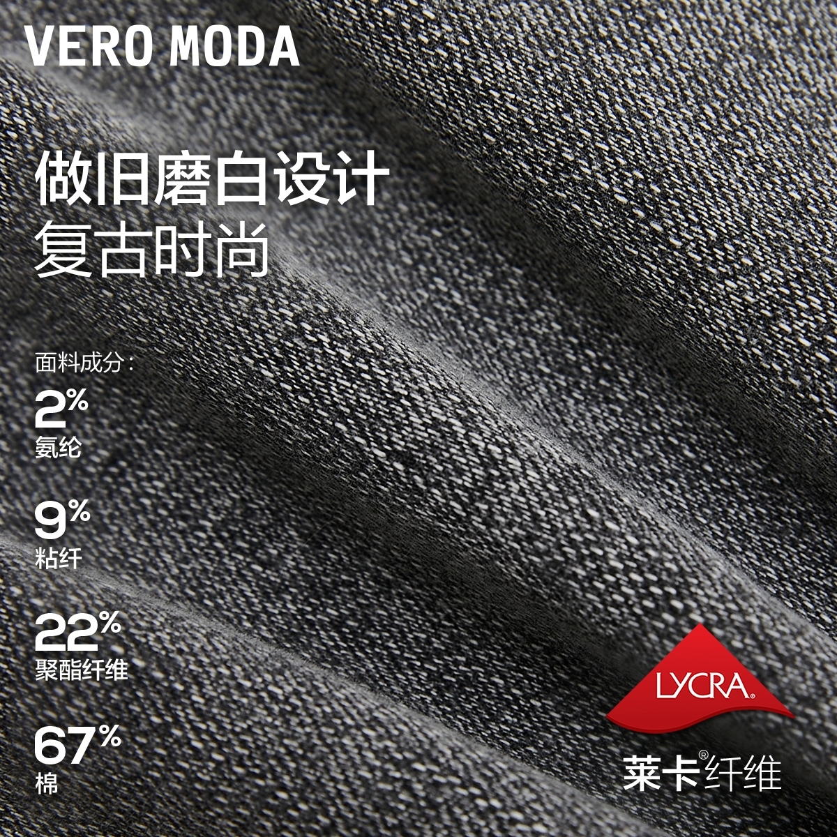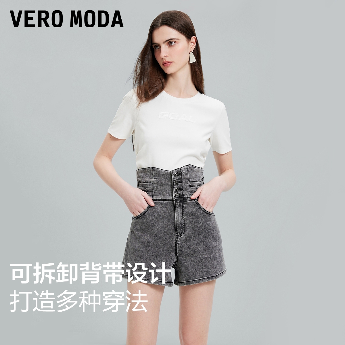 Vero Moda奥莱牛仔背带短裤女夏季新款高腰复古个性做旧收腰裤子