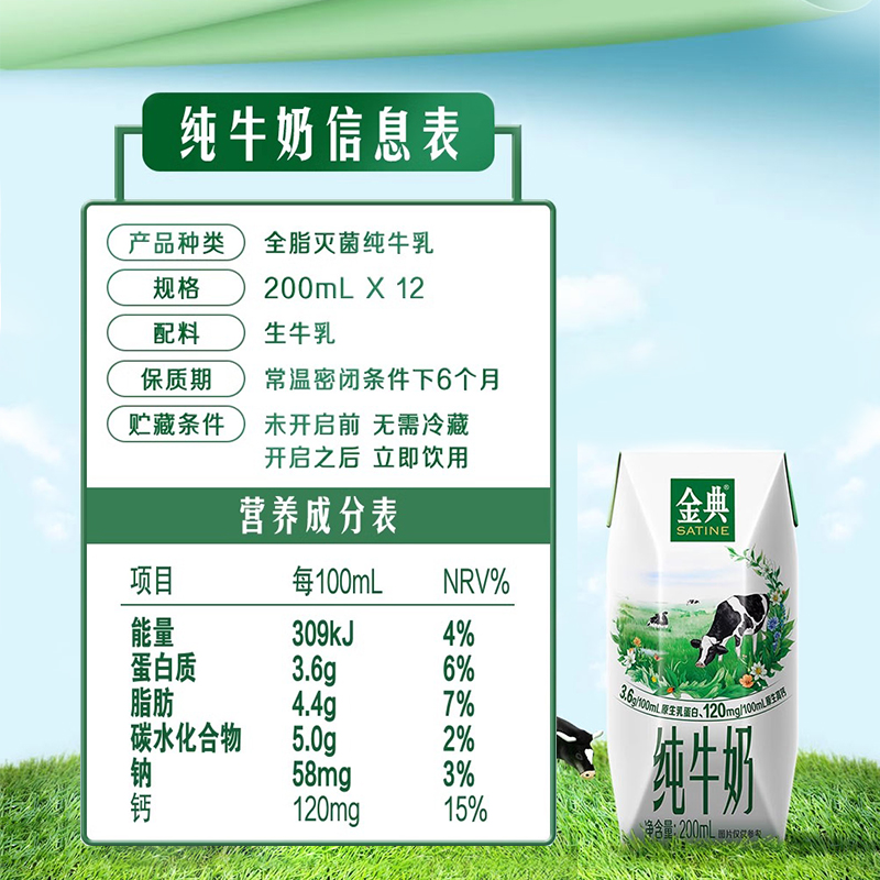伊利金典纯牛奶【200ml】*12盒整箱优质蛋白学生营养