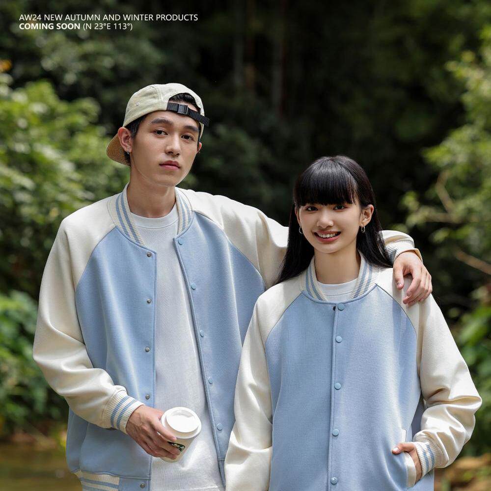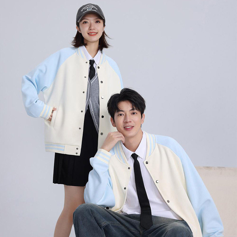 拼色落肩新款棒球服卫衣定制