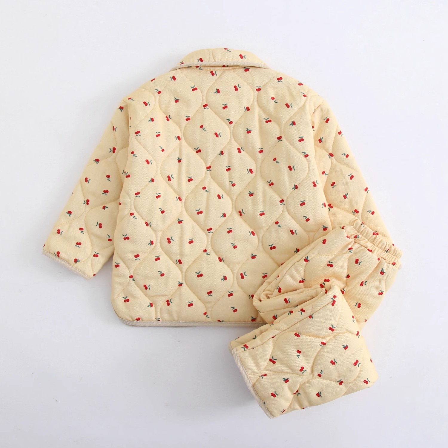 冬季女孩宝宝纯棉加厚保暖夹棉中大童儿童家居服套装女童棉袄睡衣