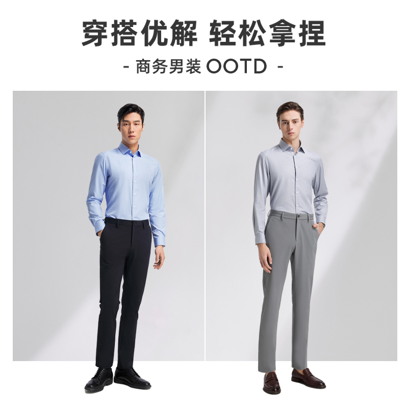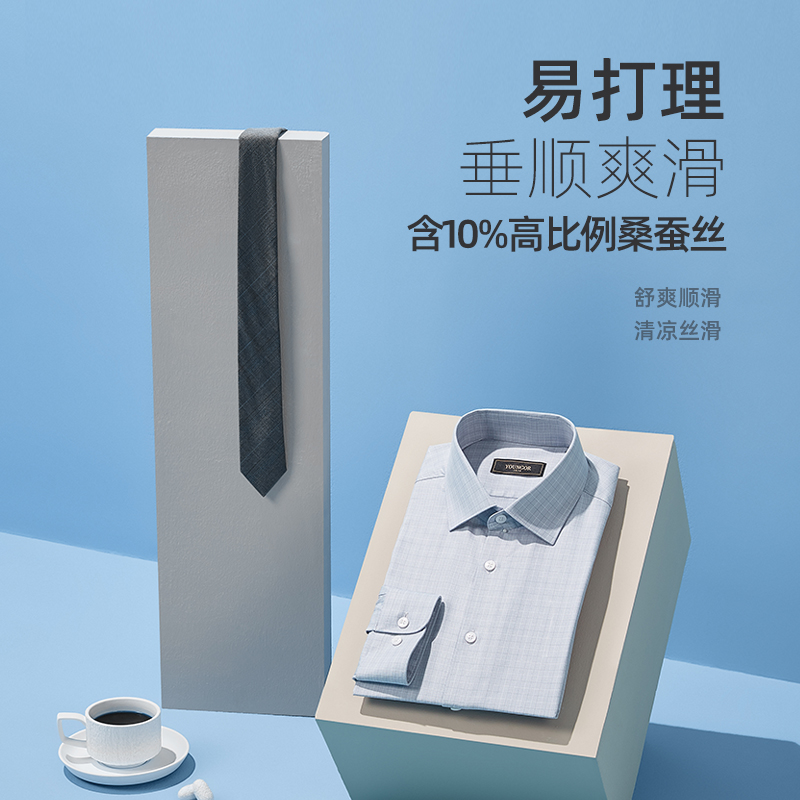 【桑蚕丝凉感】雅戈尔官方春新品商务休闲格纹冰丝长袖衬衫男
