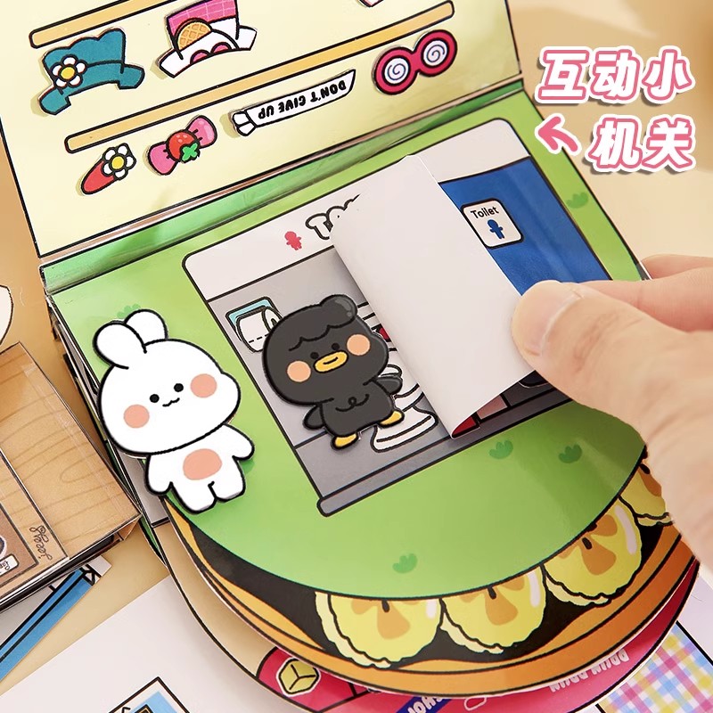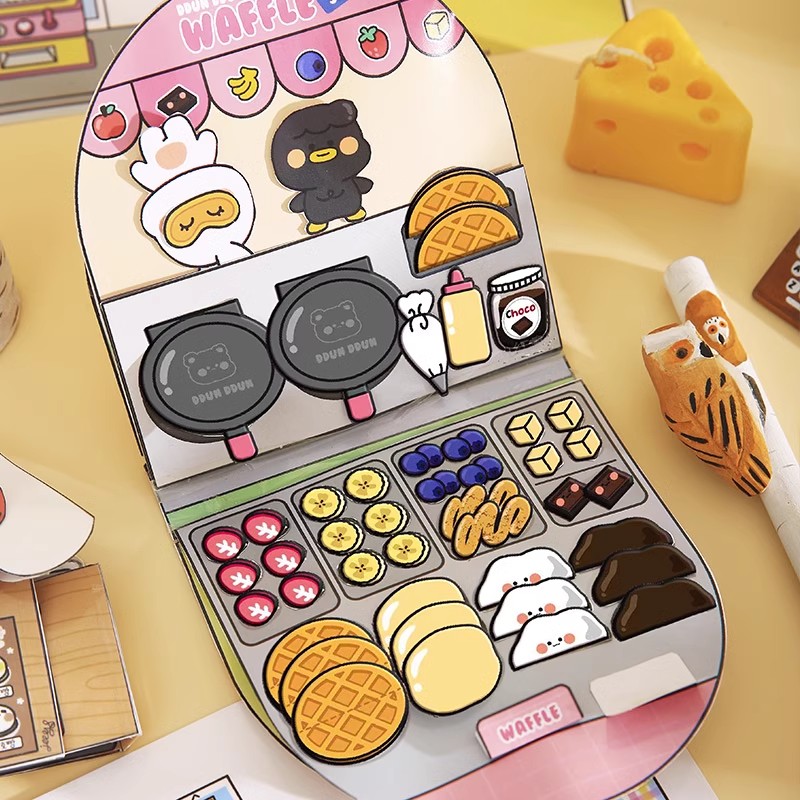 女孩安静书全部免裁剪豪华新款华夫饼美食小吃店安静书diy立体书豆豆本儿童手工玩具不用剪仓鼠面包店全套书