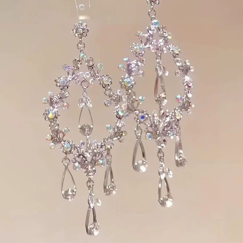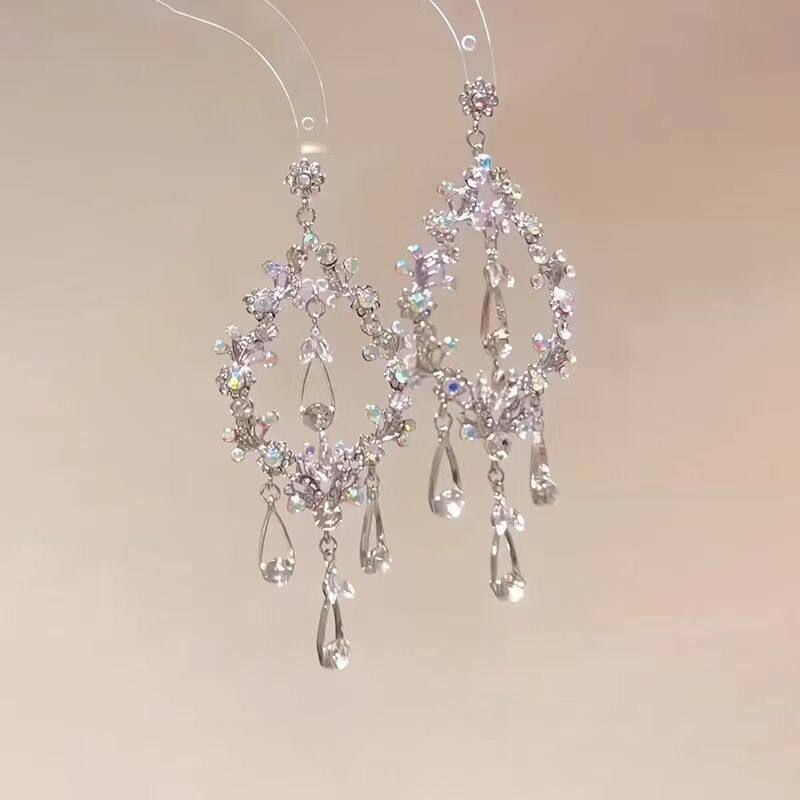 「晚宴千金」爆闪花环水滴流苏耳钉精致清冷感夸张气质耳饰配礼服