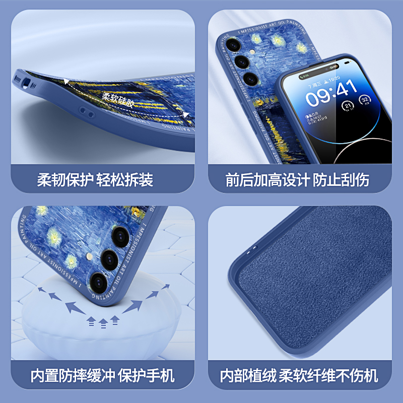 梵高油画适用三星A55手机壳新款5G液态硅胶套galaxya星空samsunga男A555g女samsung复古外壳galaxy啊α向日葵