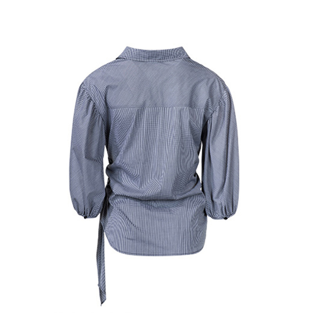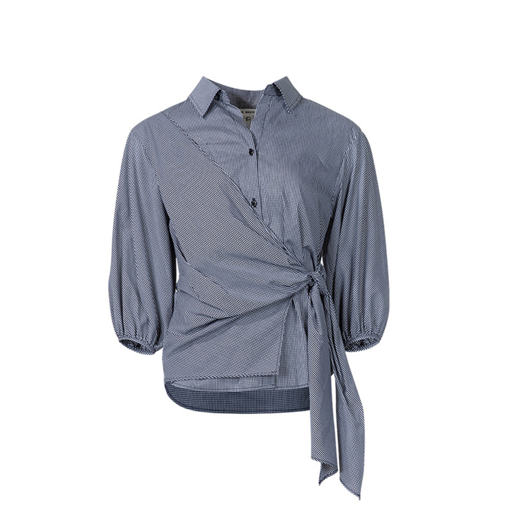 【BJH】高腰显瘦系带翻领百搭衬衣休闲潮流时尚女式衬衫BJ2183