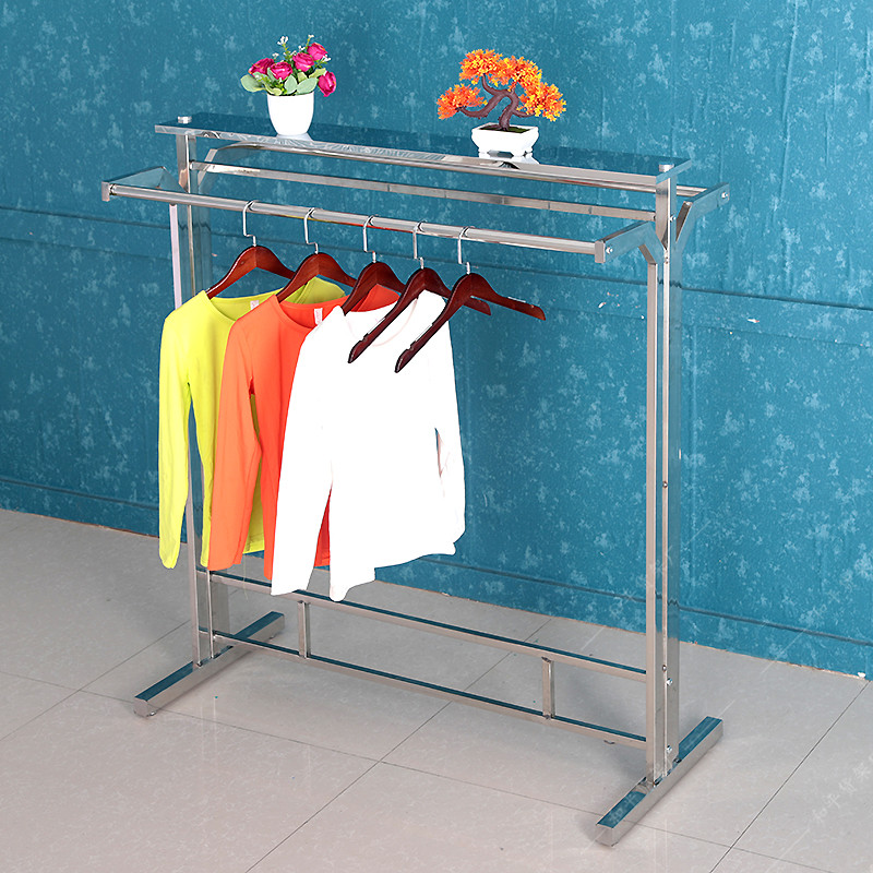 加厚双杠中岛架服装店展示架男女装童装双排中间货架侧挂落地衣架