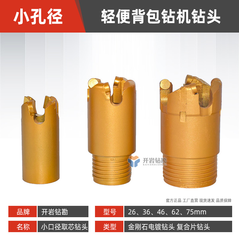 小口径钻头26 36 46 62轻便背包钻机 金刚石电镀钻头 复合片钻头