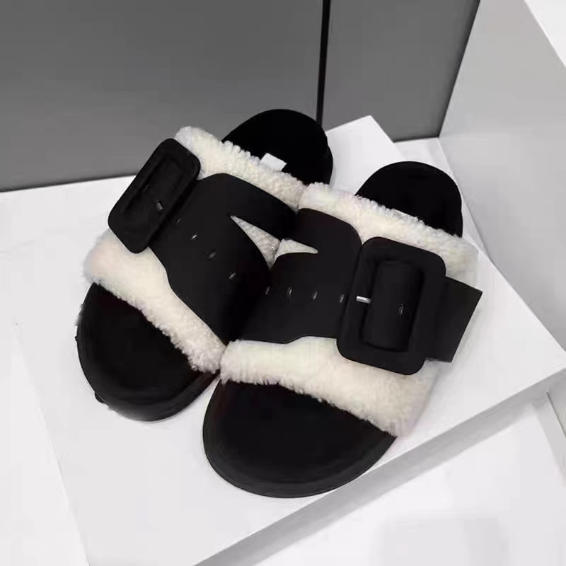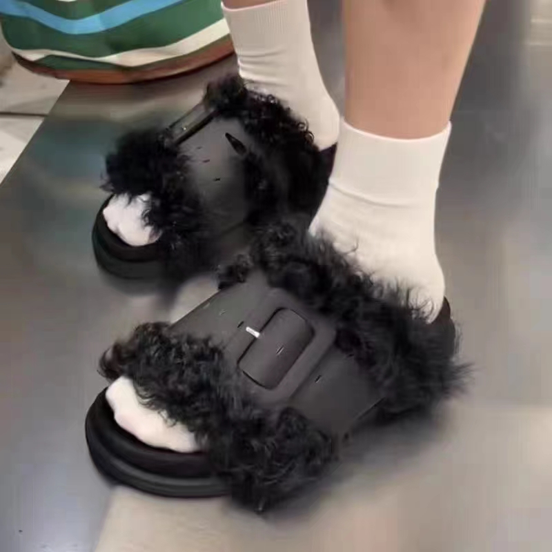 欧洲站厚底毛毛拖鞋女外穿2025年秋新款真皮羊羔毛皮毛一体一字拖