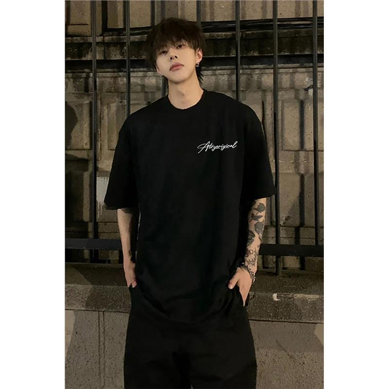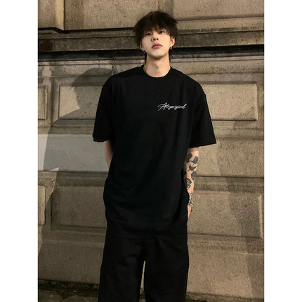 重磅黑色短袖t恤男2025新款纯棉美式简约男潮宽松版夏季痞帅半袖