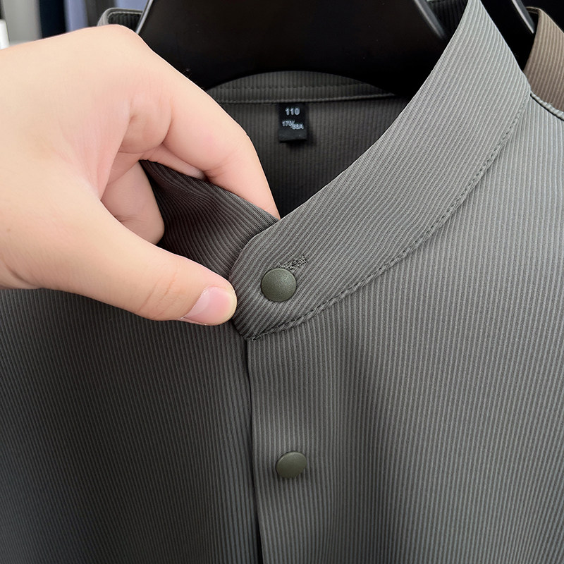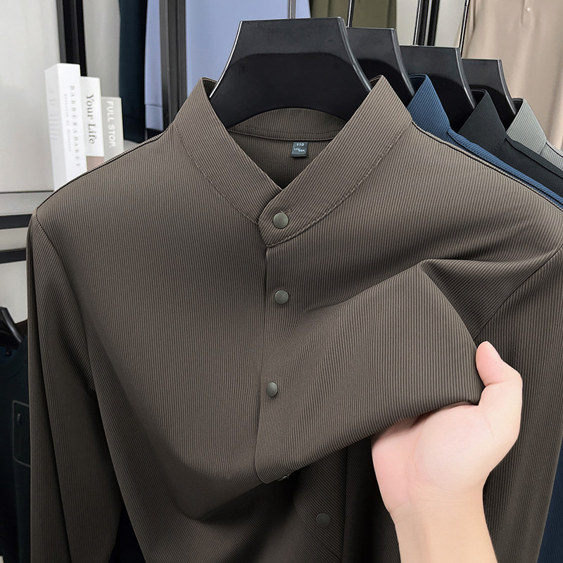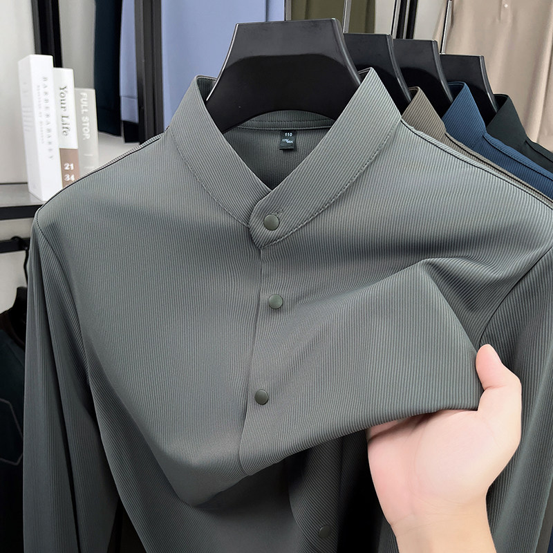 皮尔卡丹春秋立领无痕长袖衬衫男