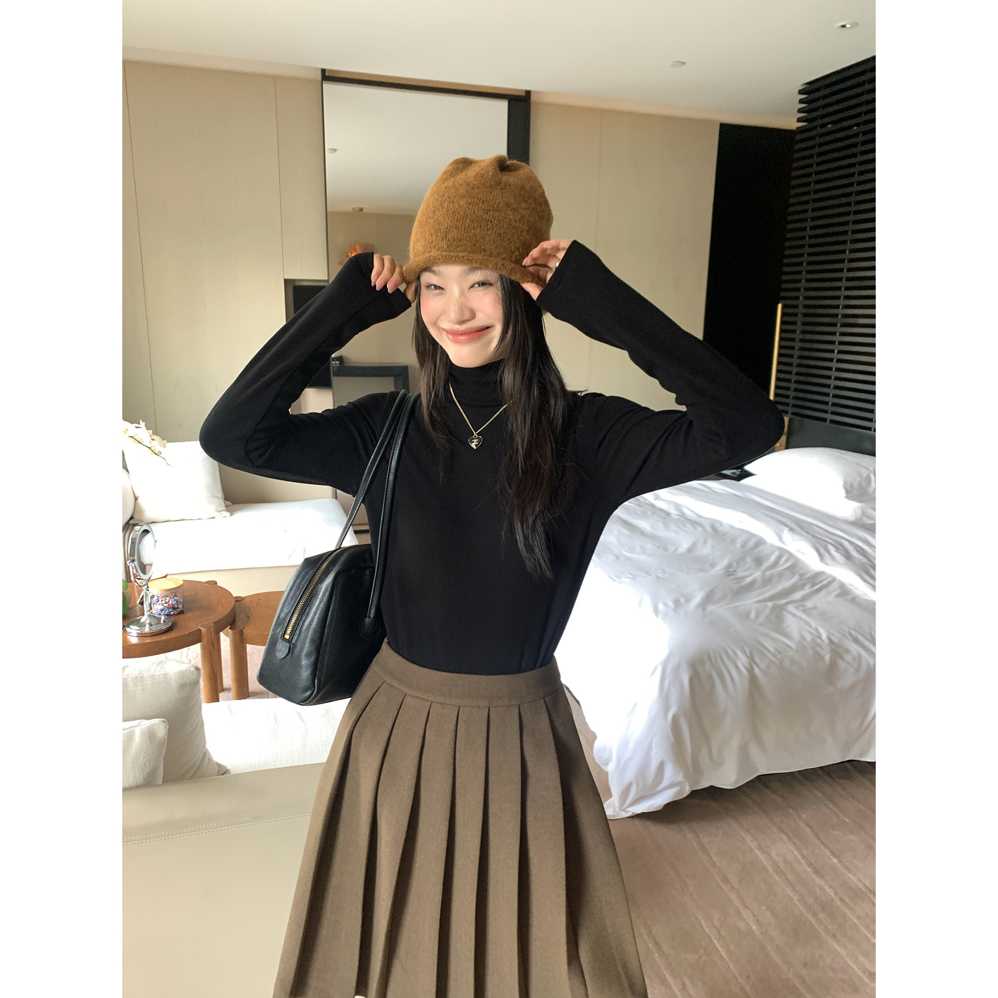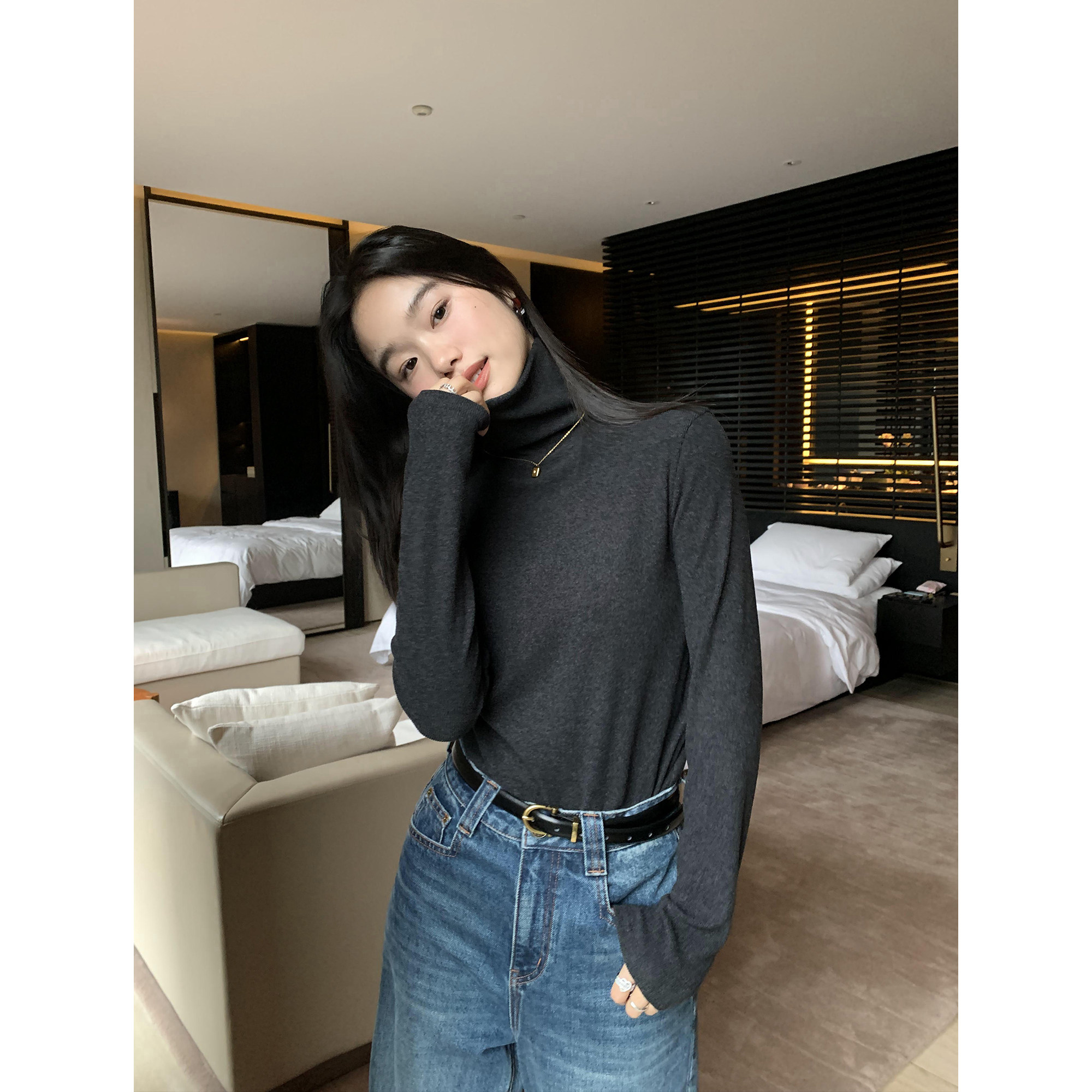 pusumede黑色高领打底衫女基础款内搭针织衫秋冬新款修身百搭上衣