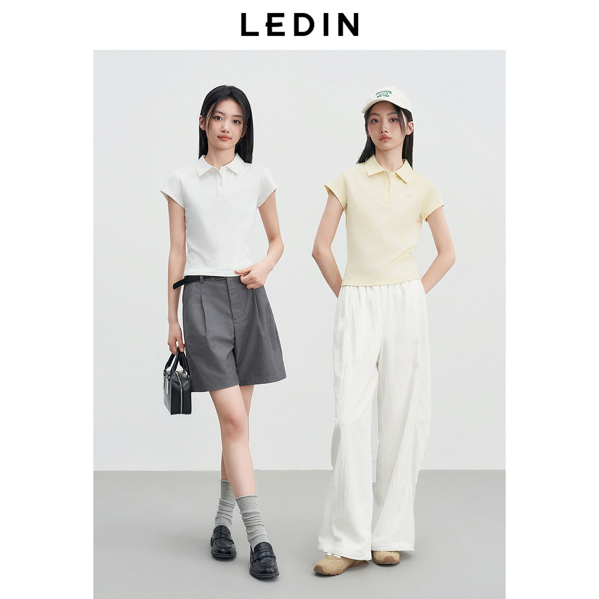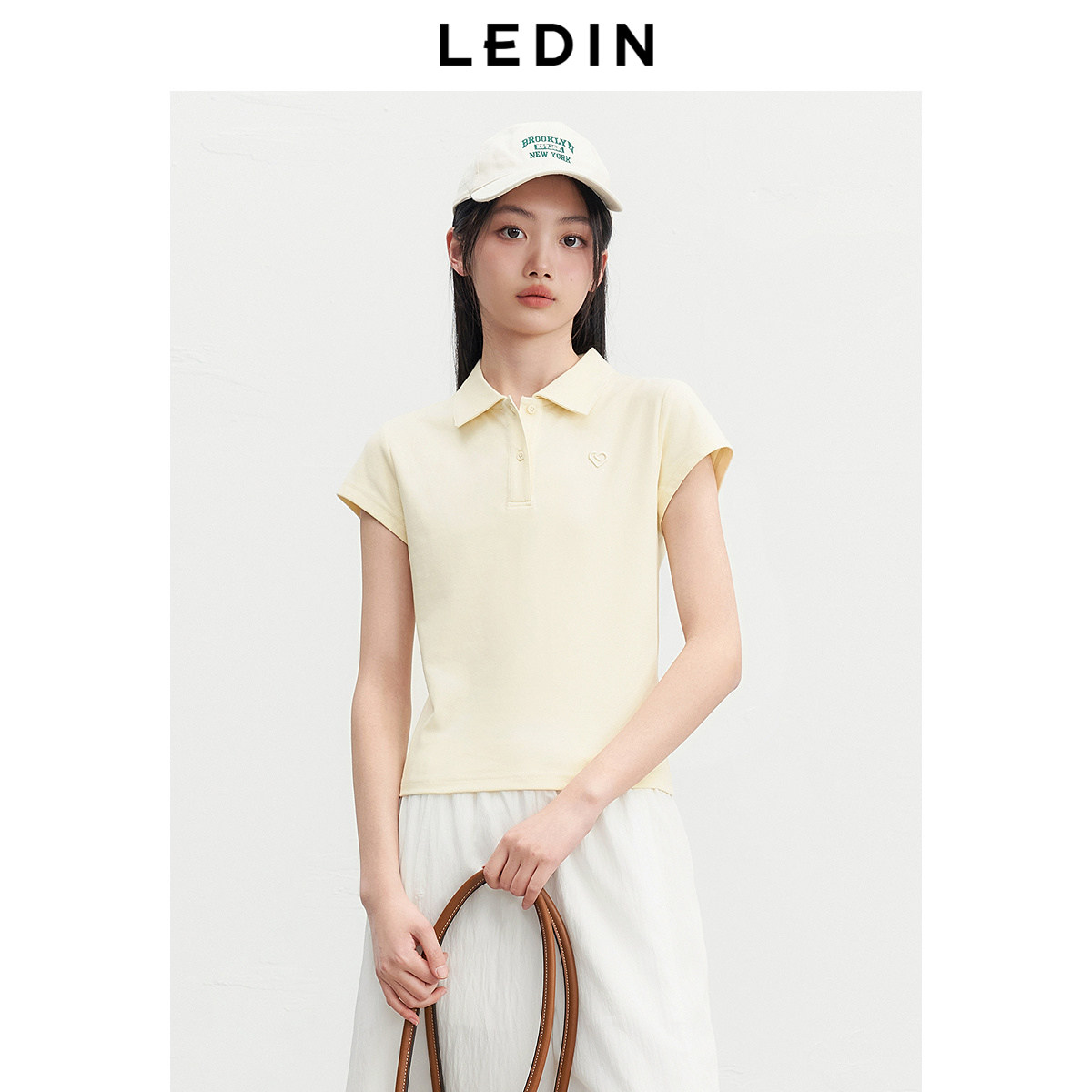 乐町翻领修身短袖25年夏季新款立体刺绣简约POLO衫遮肉小飞袖T恤