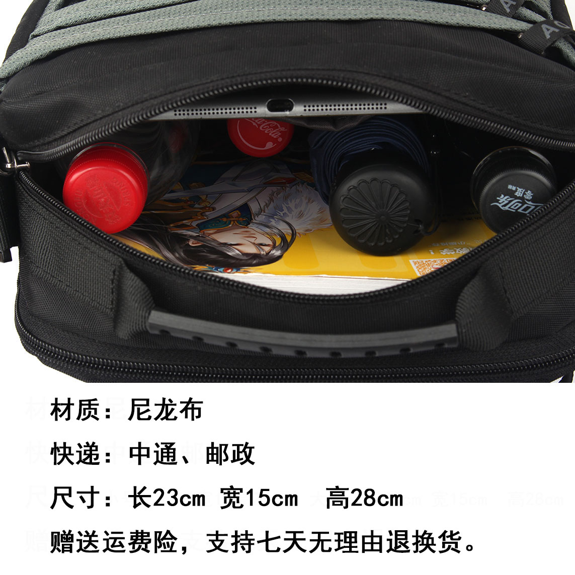 斜挎包男大容量中老年运动旅游装水杯轻便斜跨背包男士挎包单肩包