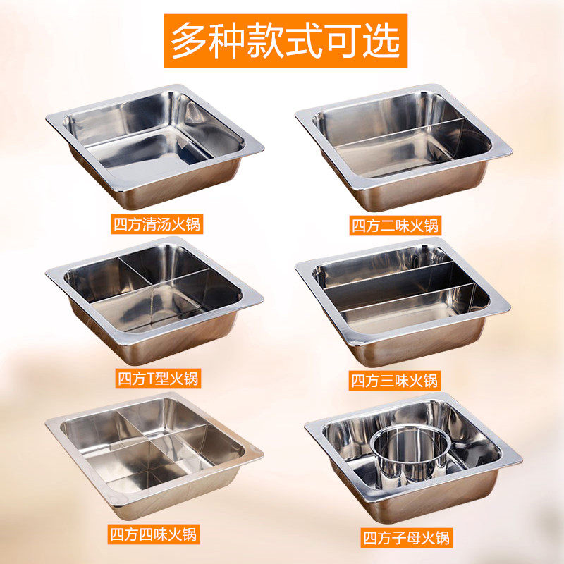 加厚四方火锅盆方形燃气电磁炉带分格盆大容量鸳鸯锅清汤锅海底捞