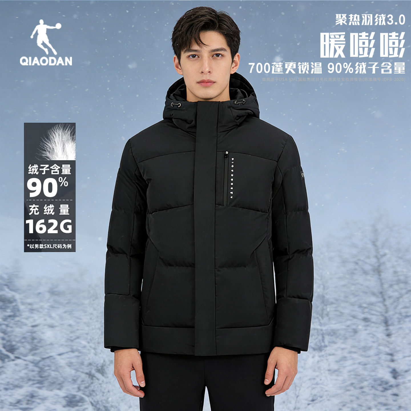 乔丹羽绒服男2025新款冬保暖防风防泼水连帽短外套QDEGM3254078B
