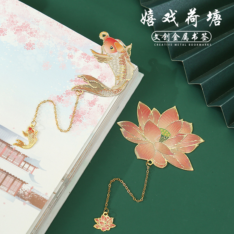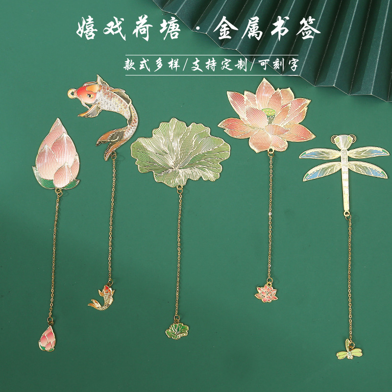 蜻蜓荷叶文创古典中国风金属书签小学生送老师创意荷花礼物纪念品